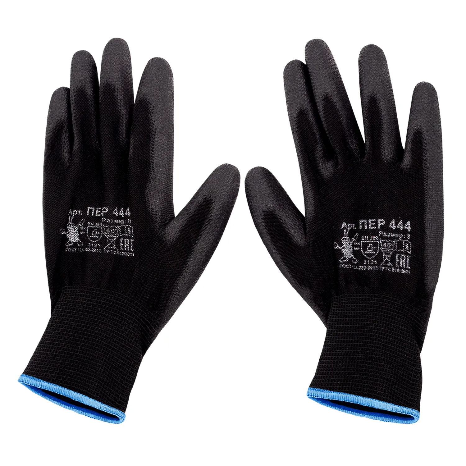 Перчатки нейлоновые с полиуретановым покрытием ПЕР 444 (13 класс, черные)Профессиональные перчатки ПЕР 444 обеспечат надежную защиту рук при выполнении точных работ. Модель сочетает в себе легкость нейлоновой основы и прочность полиуретанового покрытия.