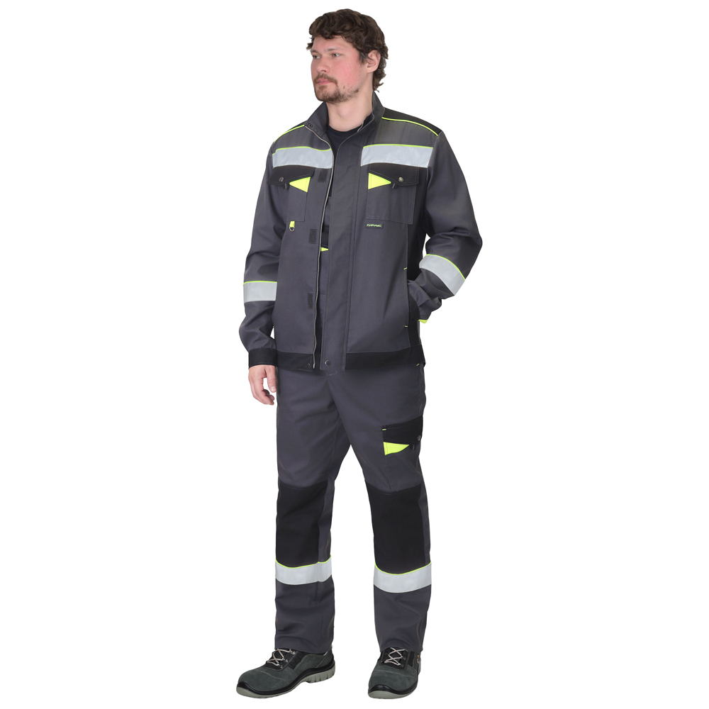 Костюм отличается комбинацией цветов, которая позволяет достичь удобства в эксплуатации: темный цвет – в сильно загрязняемых местах, яркий цвет - акцент дополнительной видимости на отдаленном расстоянии, лента СОП шириной 50мм - для обозначения сигнальной видимости, яркий цвет канта как акцент дополнительной видимости.Куртка