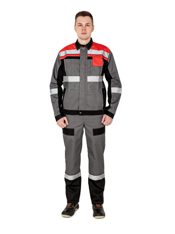 Костюм мужской рабочий ВИВАТ с СОП, куртка+ полукомбинезон, цвет серый / черный / красный