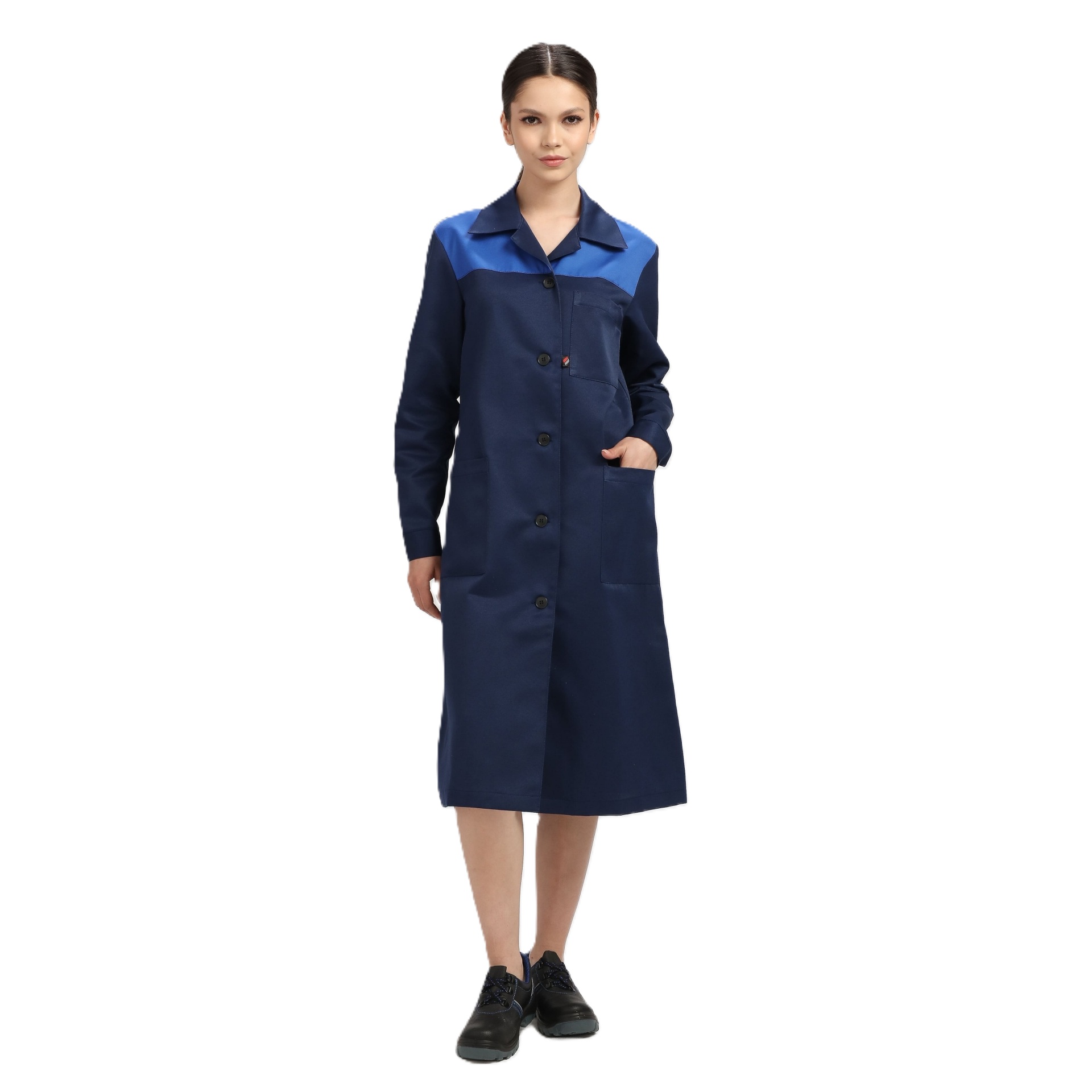 Халат женский рабочий Лигор (тк.Грета-смесовая,210, ВО), цвет т.синий/васильковый