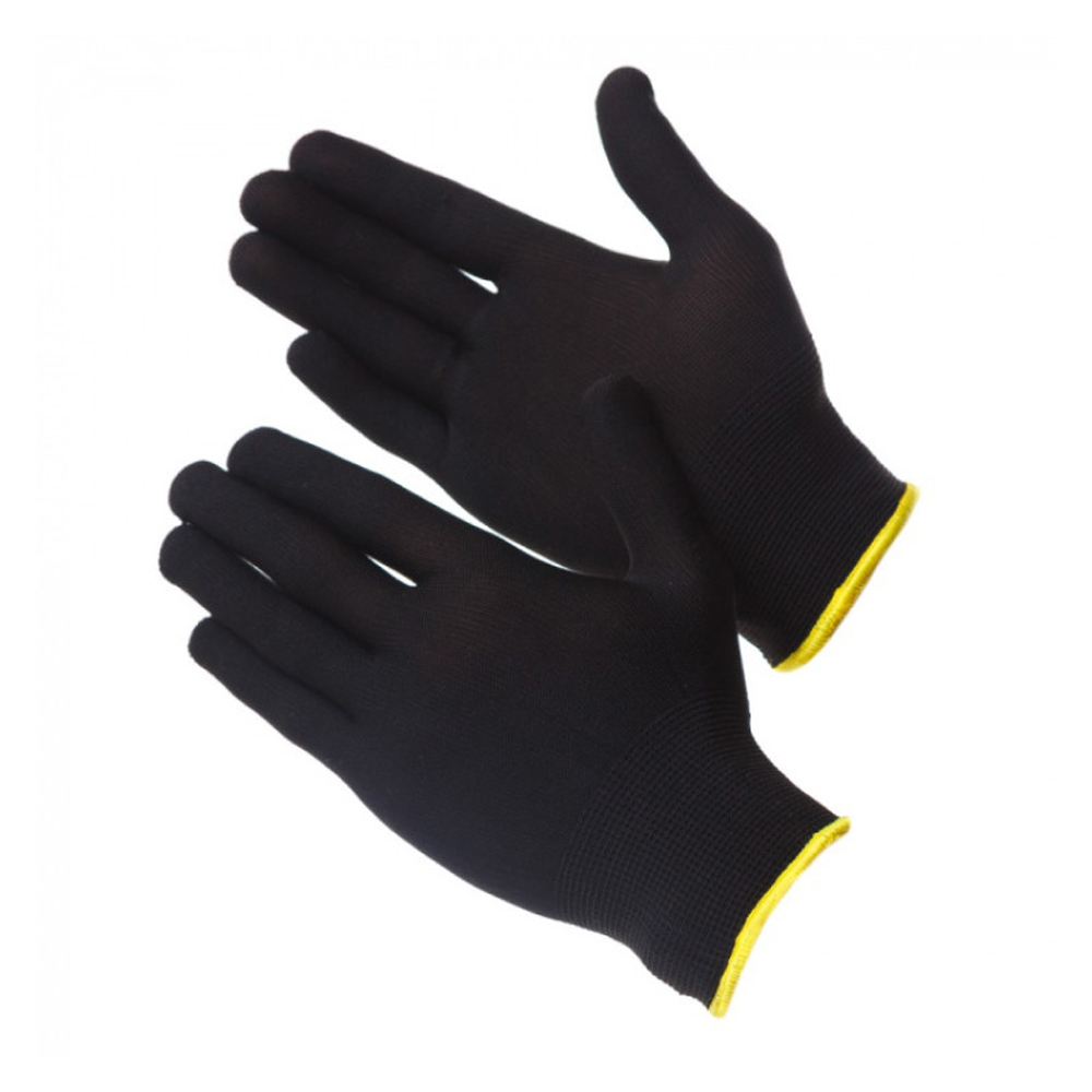 Нейлоновые перчатки черного цвета без полимерного покрытия. Плотно облегают руки, сохраняя повышенную чувствительность пальцев при выполнении тонких и мелких работ. В этих перчатках комфортно работать с самыми маленькими и гладкими деталями, поскольку они не выскальзывают из рук и не теряются.