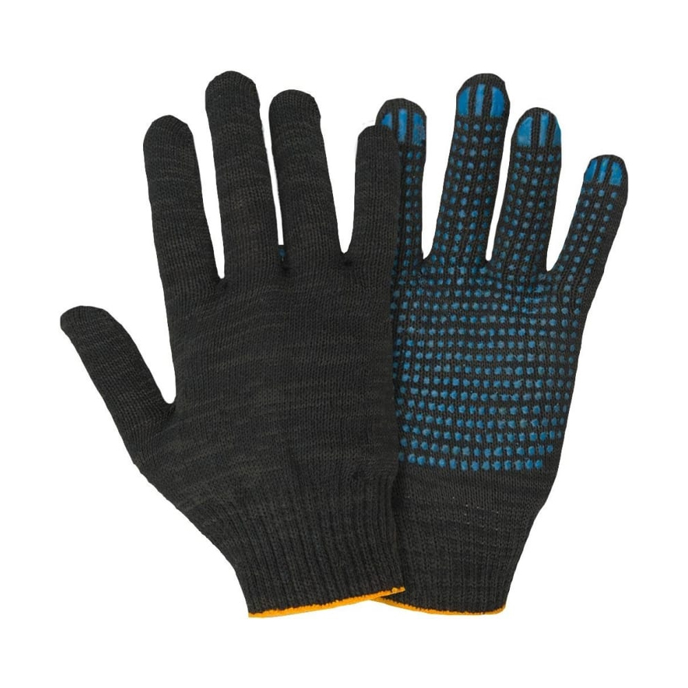 Перчатки рабочие х/б 4-х нитка 10 класс вязки с ПВХ точка, черные