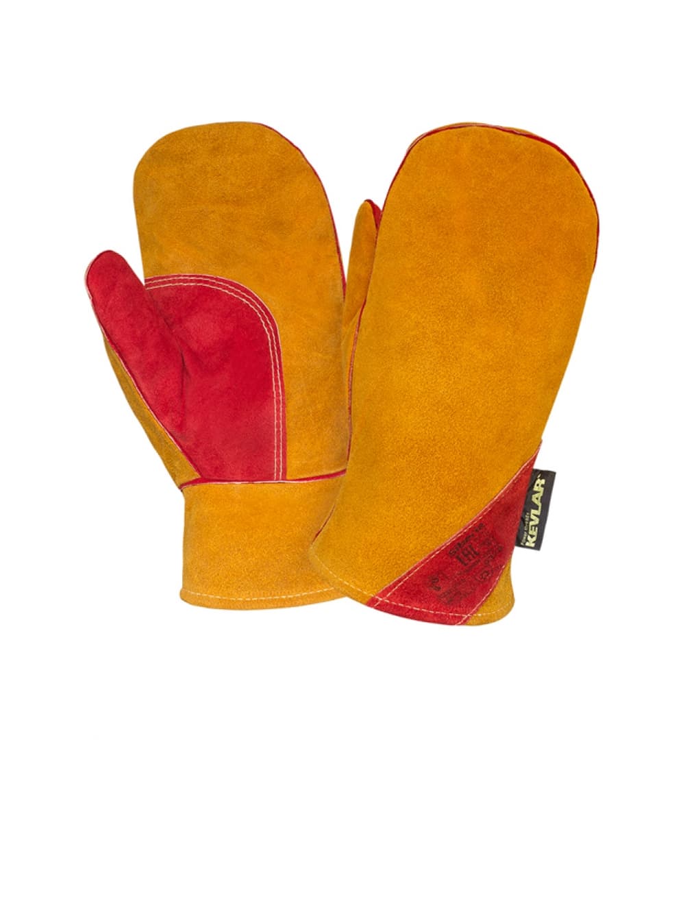 Швы — нить Кевлар, усилены вставками из кожи, на ладонной части и большом пальце дополнительный слой из спилка красного цвета.