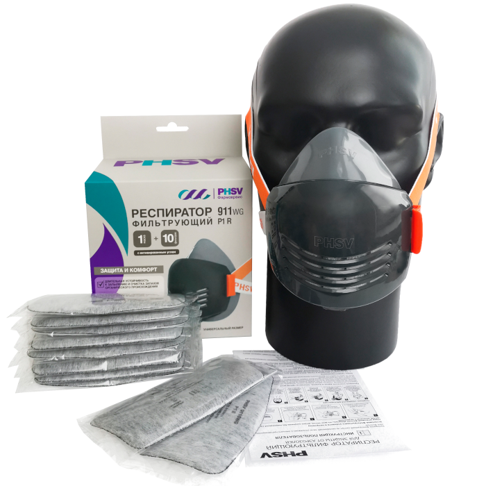 Респиратор фильтрующий (полумаска) PHSV 911WG для защиты от аэрозолей с фильтрами