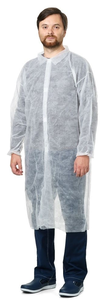 - Одноразовый халат из дышащего нетканого полотна (спанбонд);