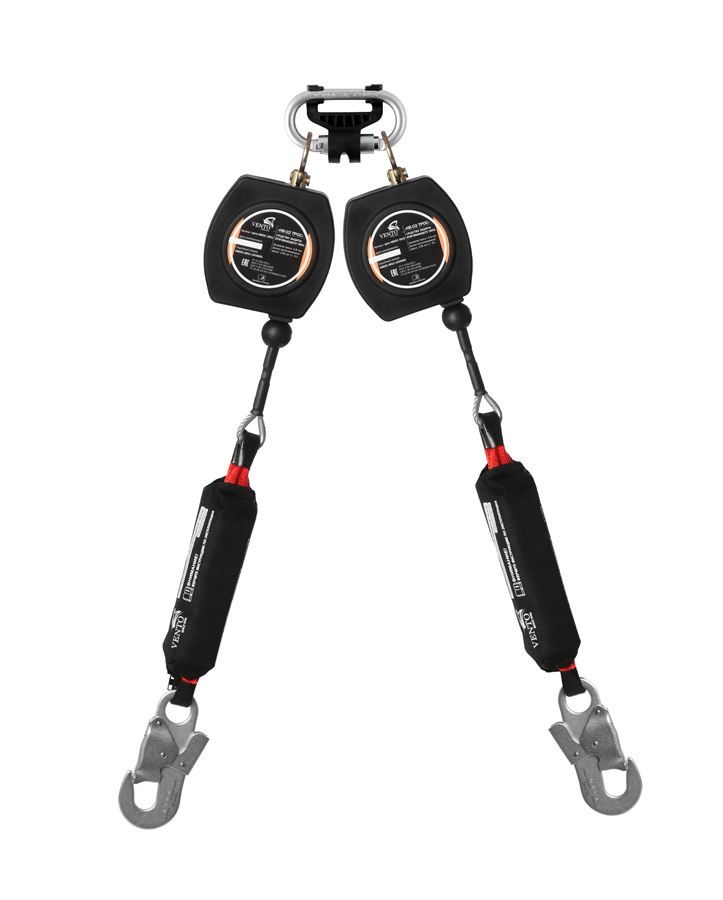 Механизм втягивания троса уменьшает глубину возможного падения, осуществляет быструю блокировку, снижая нагрузку и риск получения травмы при падении.