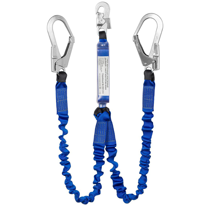 Соединительные элементы (карабины) выполнены из стойкой к коррозии легированной стали. Лента стропа трубчатая, внутри которой эластичный сердечник, который сокращает длину при передвижении пользователя, что исключает вероятность запнутся.