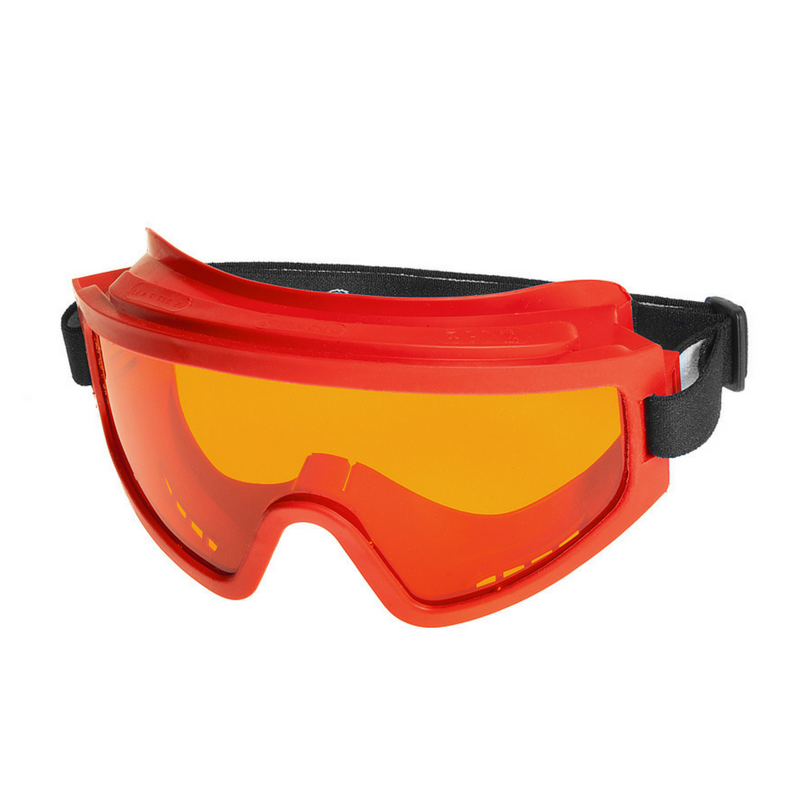 Очки с непрямой вентиляцией с панорамным защитным стеклом-светофильтром янтарного цвета из твердого материала Plexiglas.