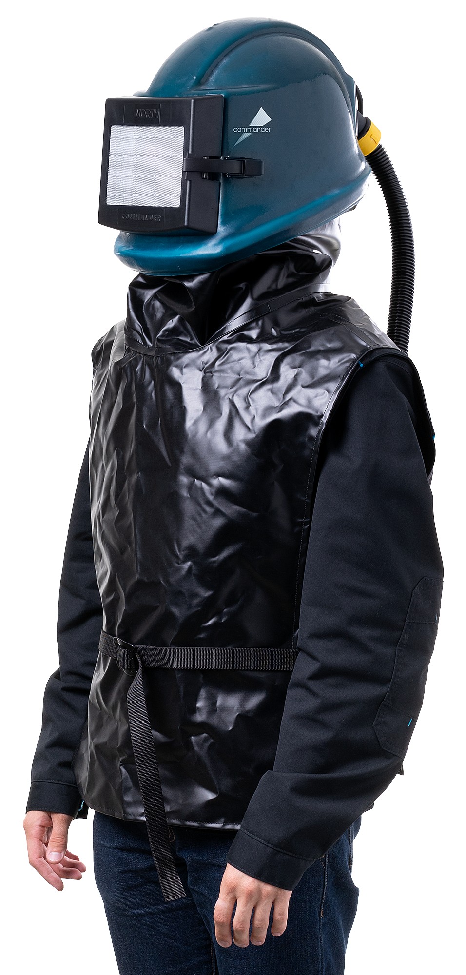 Пелерина для шлема пескоструйщика North, ПВХ (бизонил), черная в Южно-сахалинске по цене от 2475 руб. оптом и в розницу в интернет-магазине спецодежды и СИЗ NeoForm. Бесплатная консультация и помощь в выборе товаров. Низкие цены напрямую от производителей. Нанесение логотипа и пошив спецодежды под заказ. На все товары распространяется гарантия производителя. Удобная и гибкая доставка до двери или самовывоз.