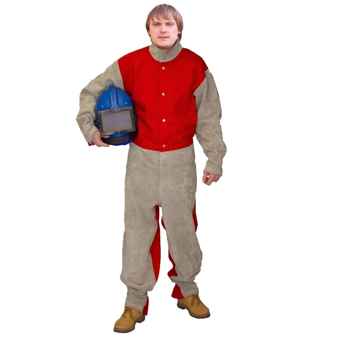 Костюм для пескоструйных работ ВЕКТОР (VECTOR) с вставками из спилка, красный