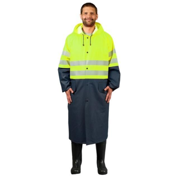 Благодаря сочетанию исходного сырья, продуманной конструкции и монолитных швов модель надежно защищает от дождя, потоков холодного воздуха, сырой нефти и различных продуктов ее переработки. Низкотемпературная устойчивость полимерного покрытия позволяет использовать плащ даже в морозную погоду без потери эластичности.Эргономичные элементы