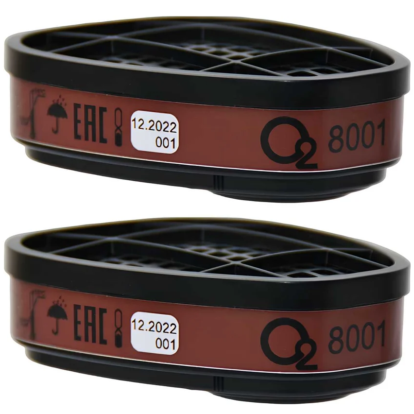 Противогазовый фильтр О2 8001 класса A1: защита от органических соединений (комплект 2 шт.)Фильтрующий элемент модели 8001 с маркировкой A1 представляет собой специализированное средство индивидуальной защиты, предназначенное для нейтрализации органических газов и паров, температура кипения которых превышает 65°C. Продукт поставляется в упаковке, содержащей два фильтра, и является совместимым аналогом модели 3М-6051, что расширяет возможности выбора для потребителя.