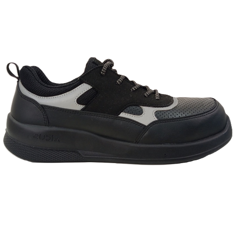 - Материал верха: высокопрочная перфорированная кожа обеспечивает защиту от истирания и препятствует перегреву стопы. Комбинация с микроячеистой сеткой создает эффект «дышащей» обуви, а светоотражающие элементы повышают безопасность работника на дорогах и затемненных объектах в темное время суток.