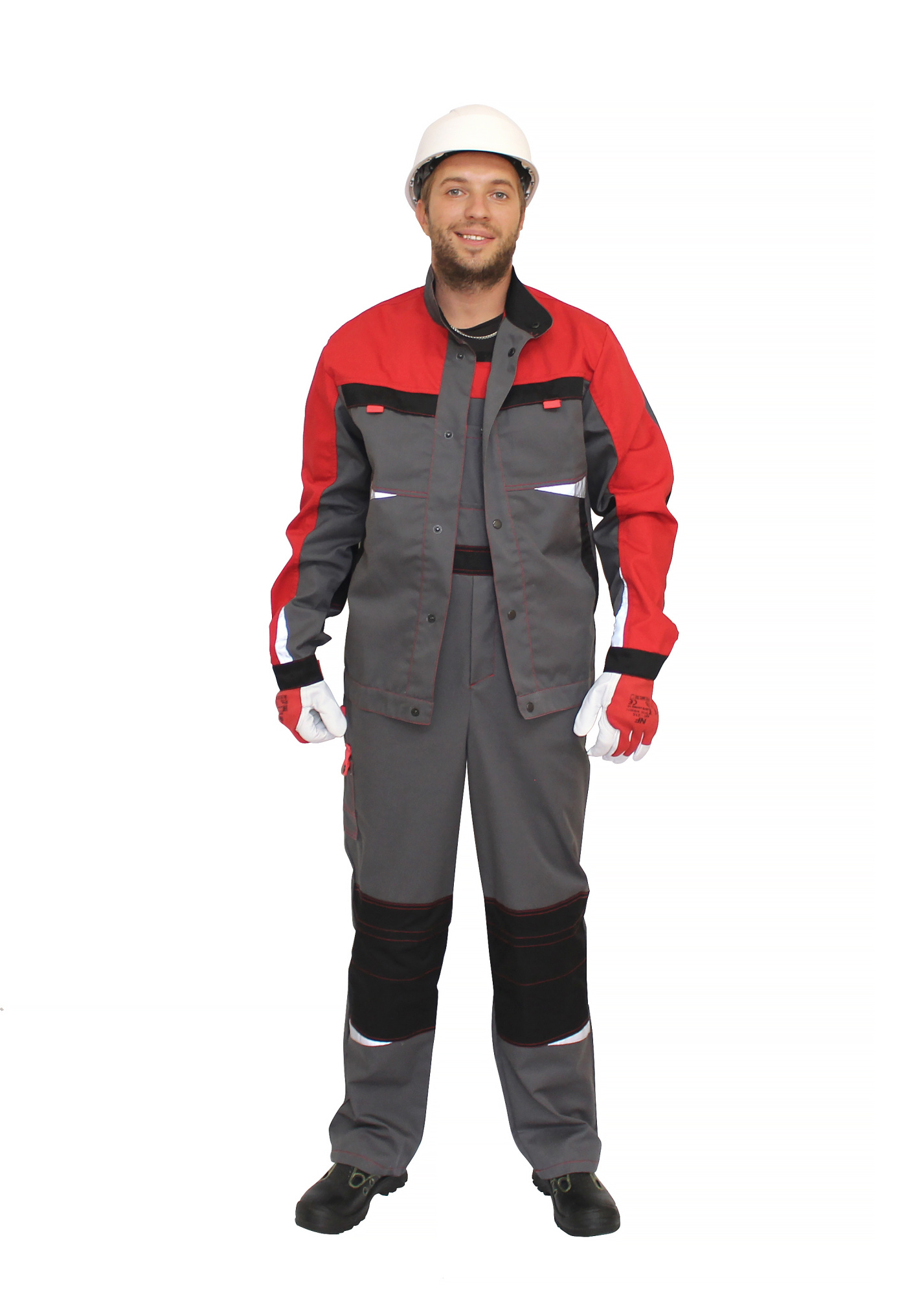 Карманы нагрудный накладной с отделениями, боковые, накладные на задних половинках для инструментов, усилительные накладки эргономичные наколенники со входом для амортизационных вкладышей.
