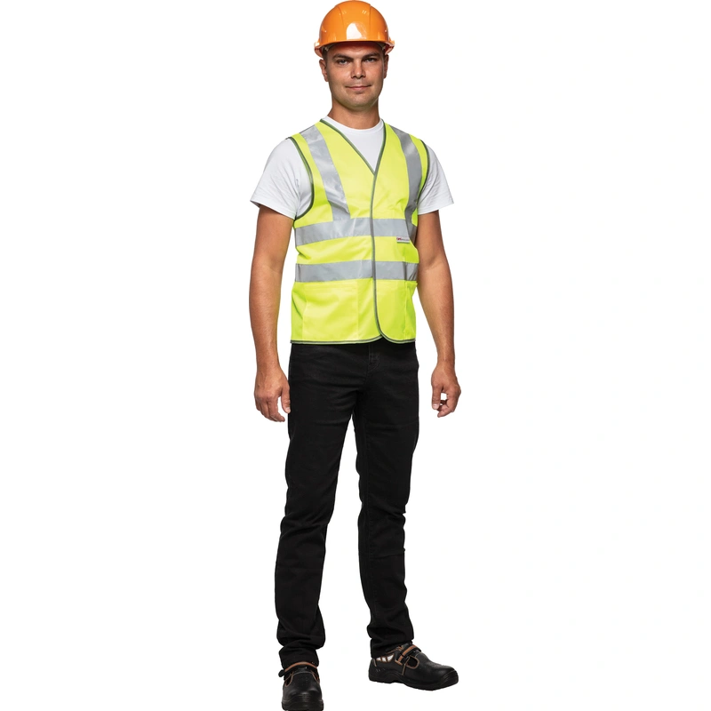 Яркий лимонный фон в сочетании с четырьмя широкими световозвращающими полосами (50 мм) гарантирует отличную заметность в любое время суток. Удобная застежка-липучка позволяет быстро надеть жилет поверх верхней одежды.