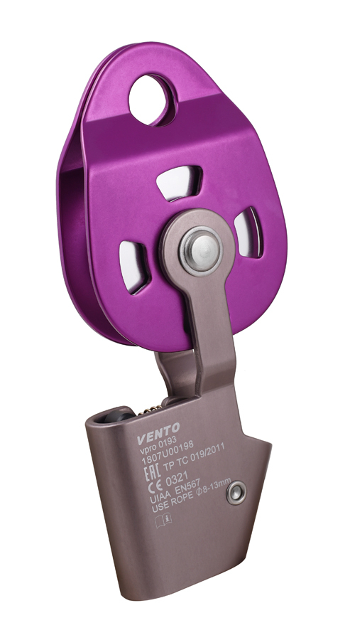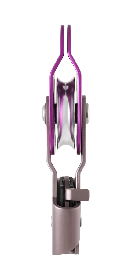 - Допускается использование в качестве блок-зажима и простого ролика. Применяется с текстильными канатами. Зажим вращается вокруг оси ролика, что позволяет вытягивать веревку под любым углом;