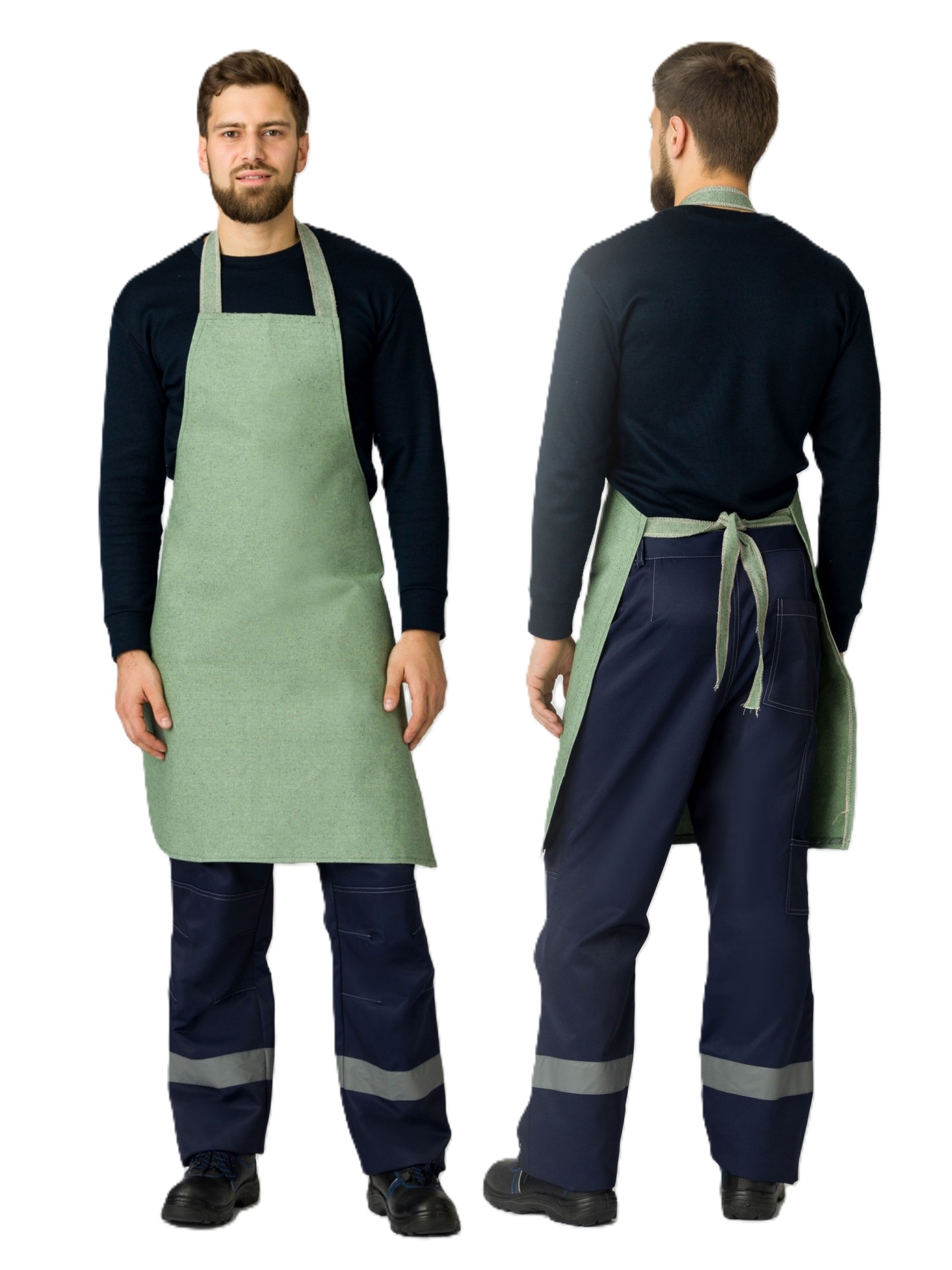 Фартук обеспечивает надежную защиту от искровых разрядов, капель расплавленного металла, термических брызг и воздействия высоких температур. Конструкция включает цельнокроеный нагрудник с замкнутой шейной лямкой и удобным нагрудным карманом. Для фиксации изделия по бокам предусмотрены прочные завязки из текстильной тесьмы, притаченные к верхним углам фартука.Характеристики: