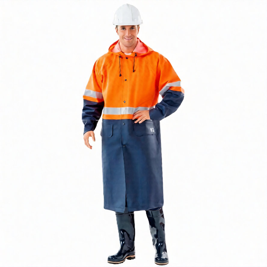 - Конструкция плаща, материал, из которого он изготовлен, и сварные швы обеспечивают защиту от воды, ветра, сырой нефти и нефтепродуктов.