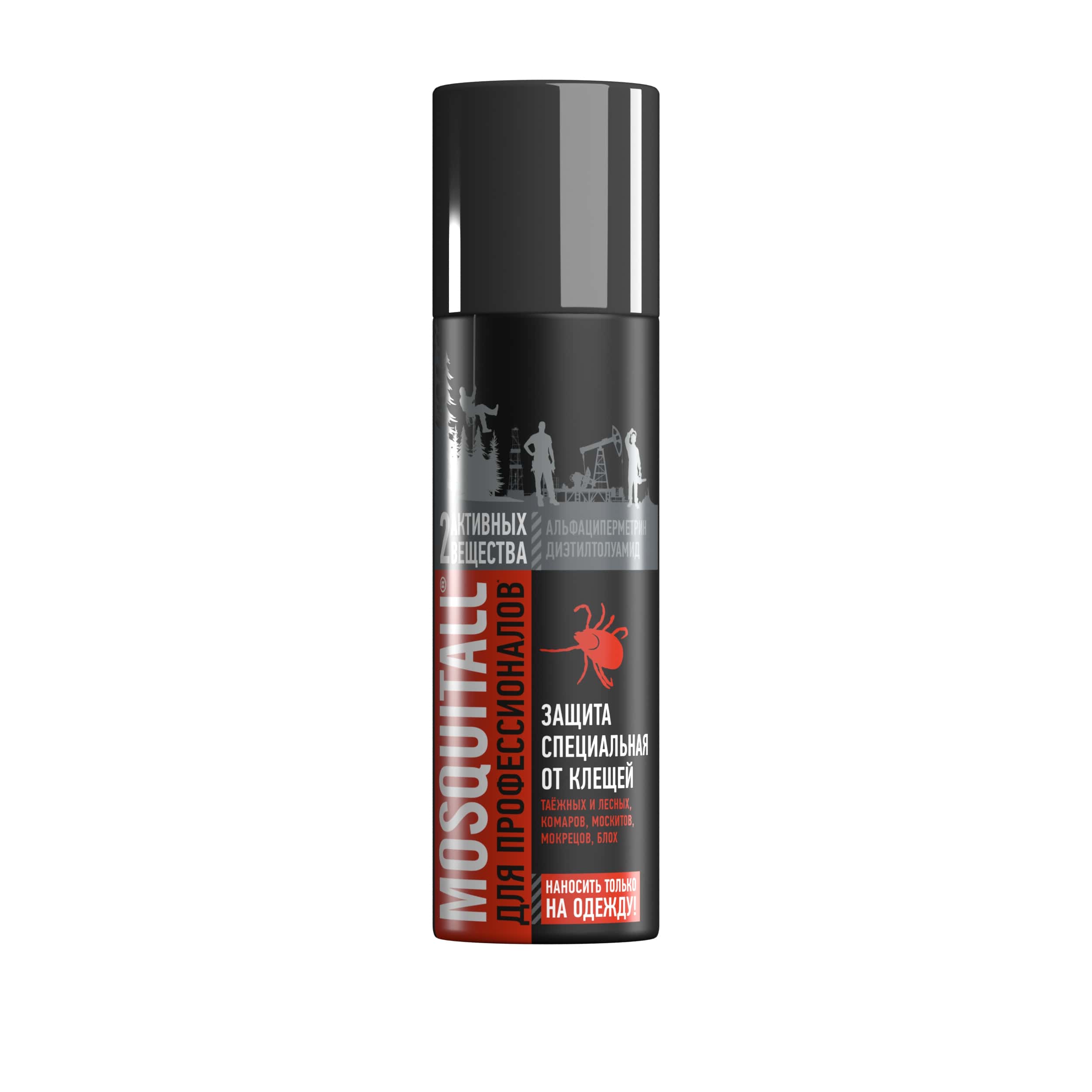 Аэрозоль Mosquitall для профессиональной защиты от клещей обеспечивает надежную комплексную защиту от иксодовых клещей, а также кровососущих насекомых - комаров, мокрецов, москитов и блох в условиях особой активности этих видов. Продукт обладает двойным механизмом действия: эффективно уничтожает лесных и таежных клещей при контакте, одновременно отпугивая комаров. Защитный эффект сохраняется до 10-15 дней при условии хранения обработанной одежды в закрытом полиэтиленовом пакете или до момента первой стирки, при этом средство не оставляет видимых следов на одежде и снаряжении.* Важно отметить, что средство предназначено исключительно для нанесения на одежду и текстильные изделия.