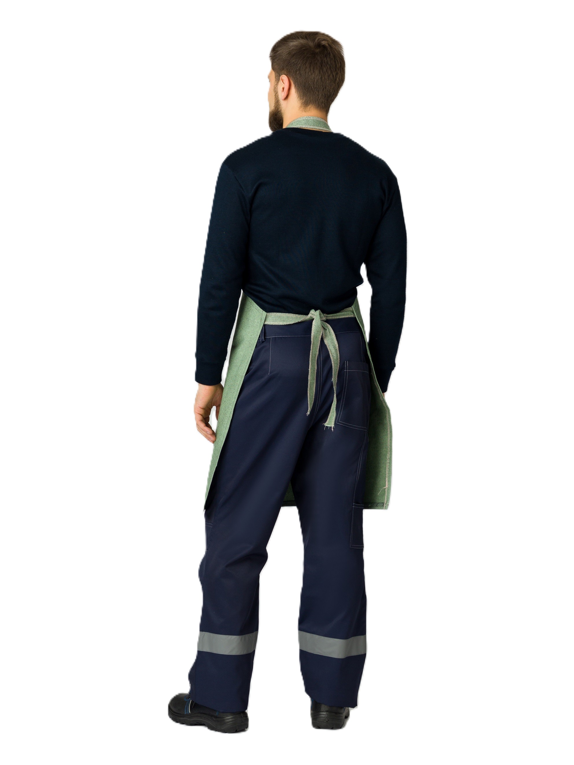 Фартук обеспечивает надежную защиту от искровых разрядов, капель расплавленного металла, термических брызг и воздействия высоких температур. Конструкция включает цельнокроеный нагрудник с замкнутой шейной лямкой и удобным нагрудным карманом. Для фиксации изделия по бокам предусмотрены прочные завязки из текстильной тесьмы, притаченные к верхним углам фартука.Характеристики: