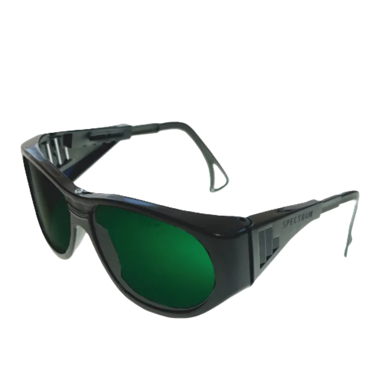 СИЗ глаз, очки О2 SPECTRUM (5) рассчитаны на два типа угроз: прямое механическое повреждение и вредное облучение оптического диапазона. Конструкция оправы оснащена цельнолитой опорой для переносицы, фланцевыми боковыми экранами и дужками, фиксируемыми за ушами с возможностью изменения их продольного размера.Защитные очки с минеральным стеклом, оснащённые тёмно-зелёным фильтром, применяются для сварочных работ. Основные эксплуатационные преимущества — отличные оптические свойства и исключительная устойчивость к царапинам (минеральная поверхность с большим показателем твёрдости).