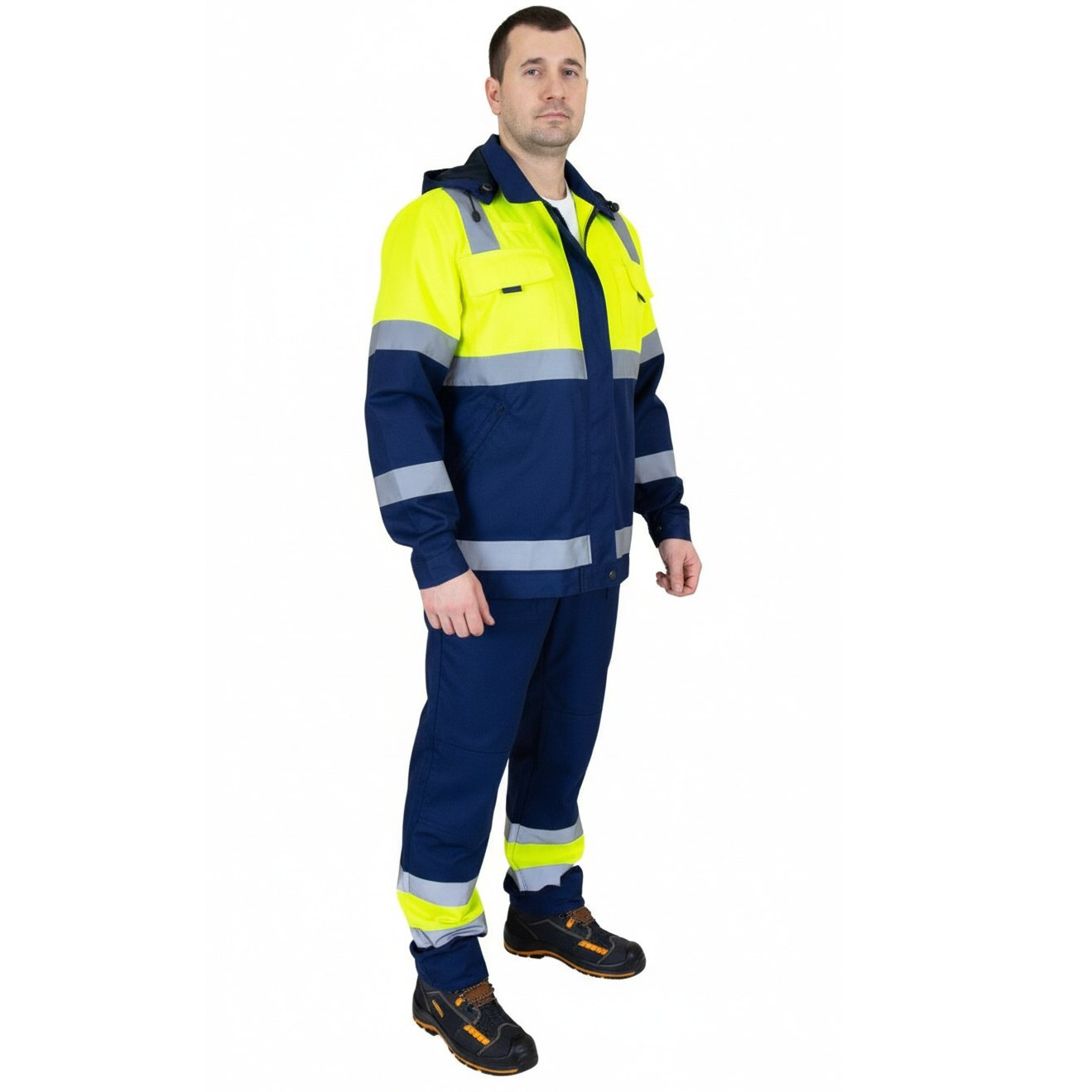 Костюм сигнальный, куртка+брюки, 3 кл. защиты, ИТР, СОП 50 мм, цвет синий/лимон