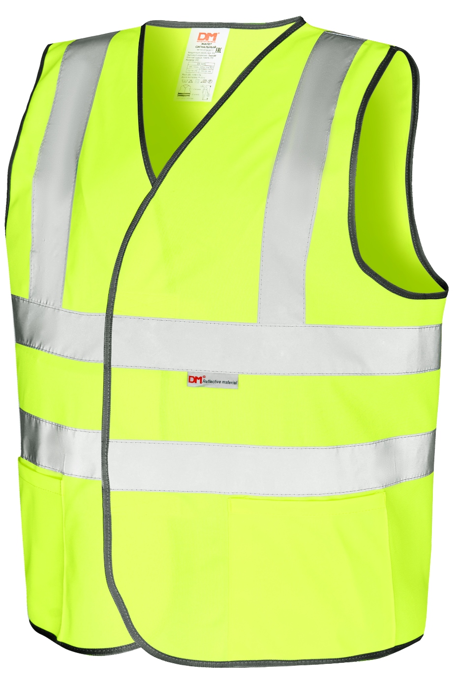 - Высокая видимость за счет сочетания флуоресцентного лимонного фона и световозвращающих полос (СОП).