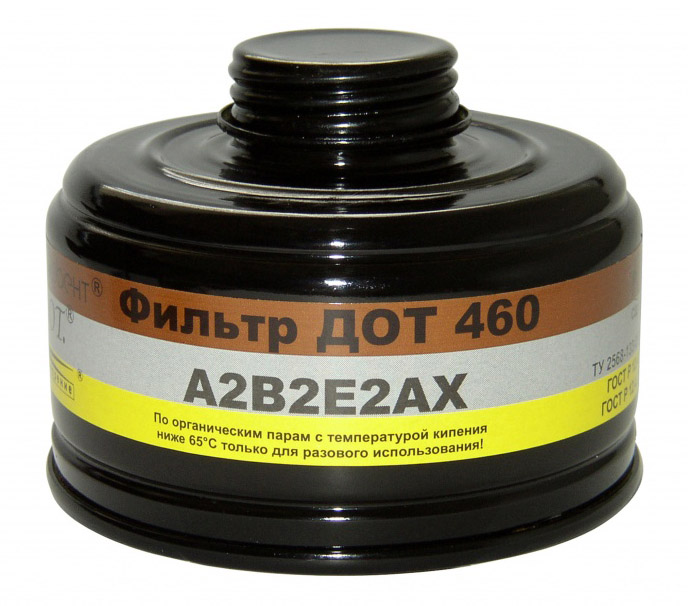 Фильтрующий элемент ДОТ 460 А2В2Е2AX в металлическом корпусе обеспечивает комплексную защиту органов дыхания от широкого спектра опасных веществ. Эффективно нейтрализует:- органические соединения с температурой кипения выше 65°С (включая нефтепродукты, ароматические углеводороды и производные бензола);