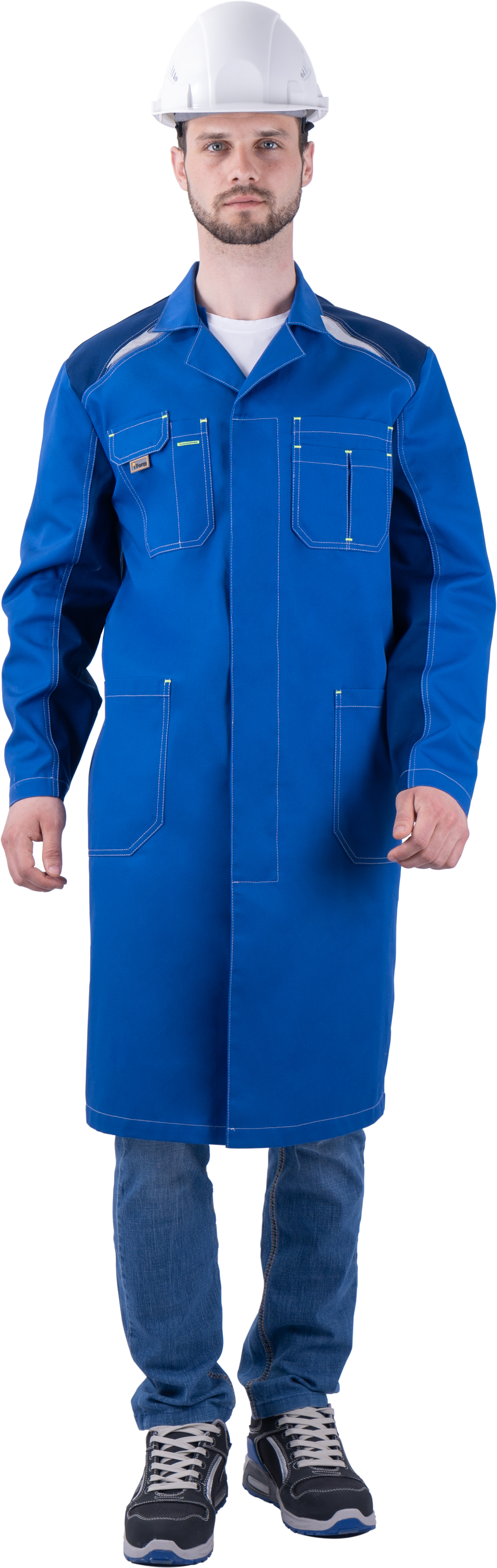 Мужской рабочий халат со светоотражающими элементами.Особенности