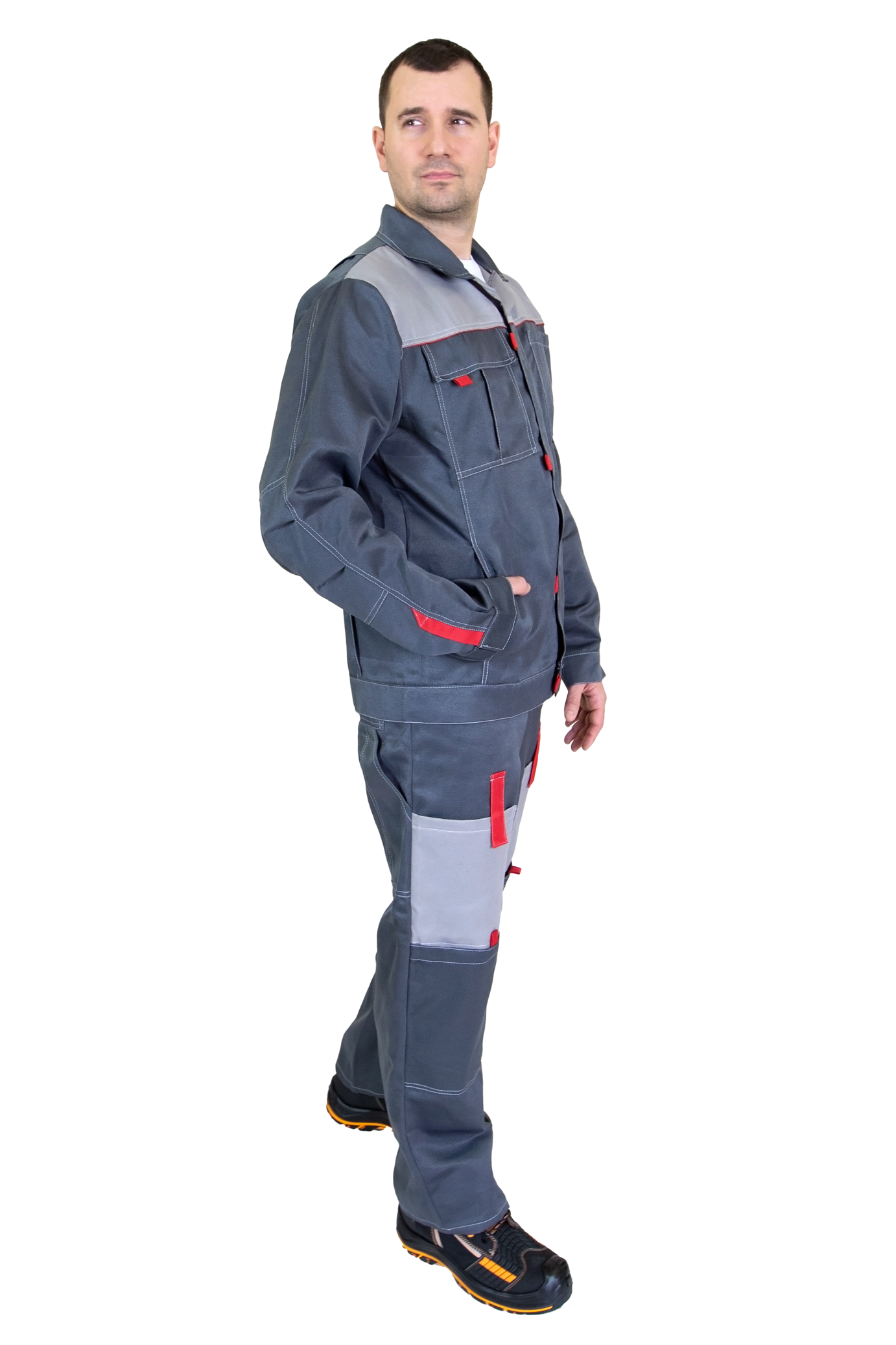 Костюм защитный ФАВОРИТ, куртка-п/к, цвет т.серый/серый/красный