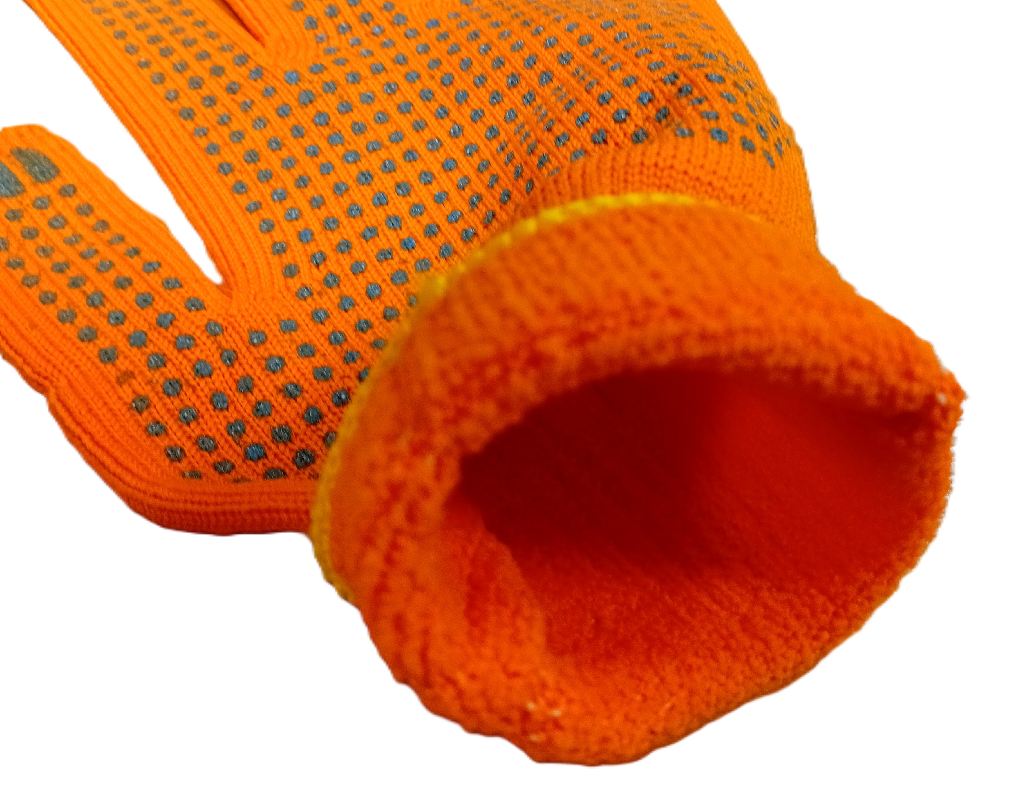 Перчатки зимние акриловые 10 класс вязки с ПВХ, оранжевые