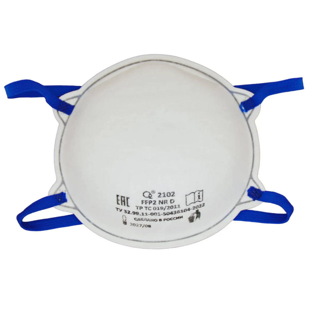 Чашеобразный респиратор О2 2102 FFP2 NR D (без клапана выдоха). Выступает альтернативой изделию 3М 8102.Конструкция и материалы: