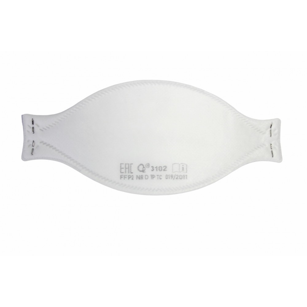 Полумаска О2 3102 с трехпанельной конфигурацией представляет собой средство индивидуальной защиты II класса (FFP2). Корпус выполнен из мягкого гипоаллергенного сырья с электростатически заряженными волокнами, что позволяет добиться тонкой фильтрации частиц при сохранении низкого сопротивления на вдохе. Эластичная резинка закреплена в четырех точках, дополнительно усиленных металлическими скобами — это предотвращает отрыв и увеличивает срок службы.Трехпанельная складная геометрия адаптируется под анатомическую форму лица, оставаясь устойчивой к смятию при мимике. Верхняя панель имеет тиснение и фигурную вырубку, что решает сразу две задачи: улучшает герметичность по переносице и снижает запотевание очков. Носовая часть оснащена регулируемым зажимом и влаговпитывающей прокладкой. Инновационный выступ в области подбородка позволяет быстро сориентировать маску на лице без лишних манипуляций. При необходимости респиратор можно компактно сложить для хранения.