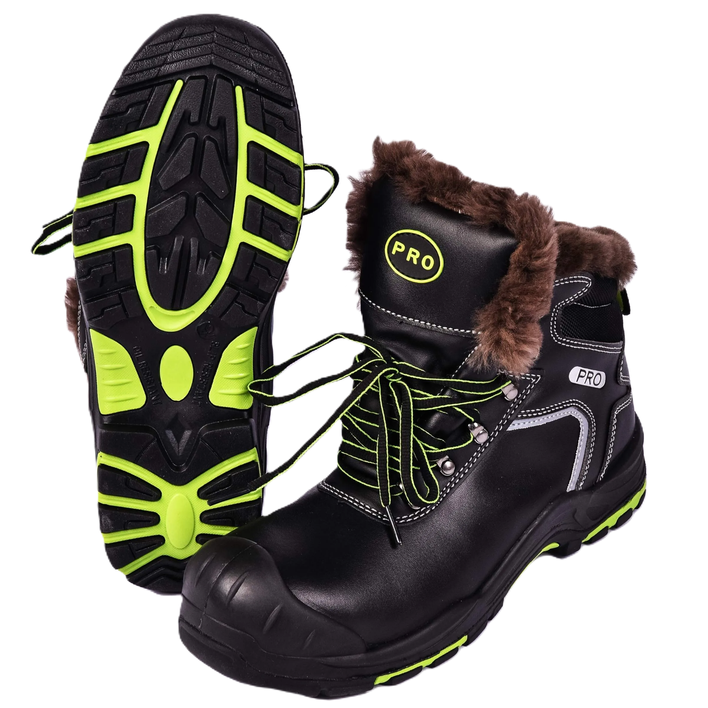 Ботинки рабочие зимние PRO 2 с натуральным мехом с КП КС НР, черный/салатовый