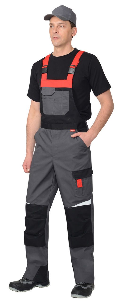 Полукомбинезон летний СИРИУС-ФАВОРИТ-МЕГА c СОП, тк. Rodos, цв. серый/чёрный/красный