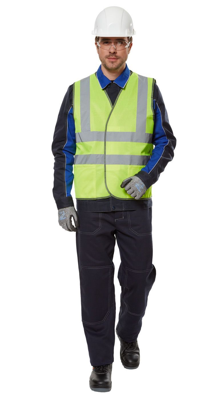 Модель с центральной застежкой на пуговицы, дополненная широкими 50-миллиметровыми световозвращающими полосами. Окантовка повышенной прочности.Материал: износостойкий полиэфир 100%, трикотажное полотно плотностью 60 г/м².