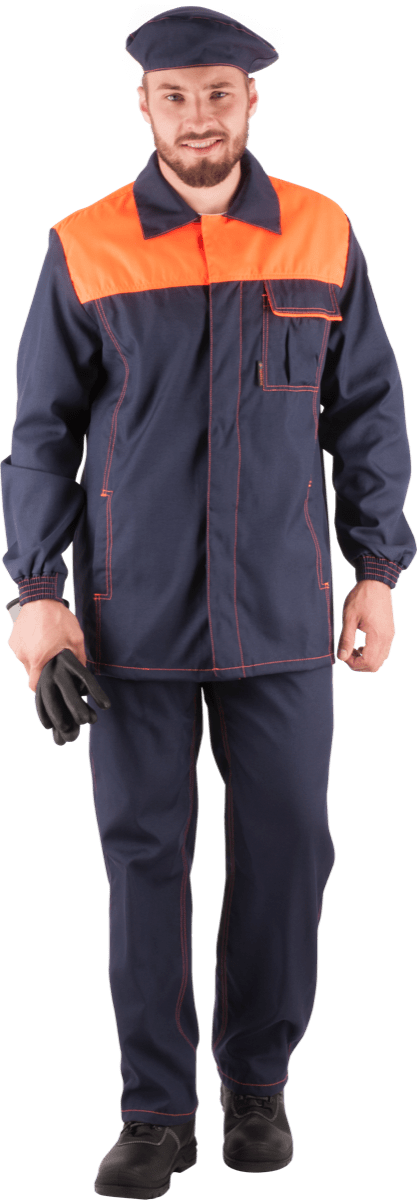 Костюм для защиты от кислот и щелочей состоит из куртки и брюк, а также берета.