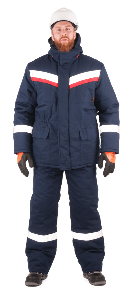 Мужской зимний рабочий костюм состоит из куртки и брюк.