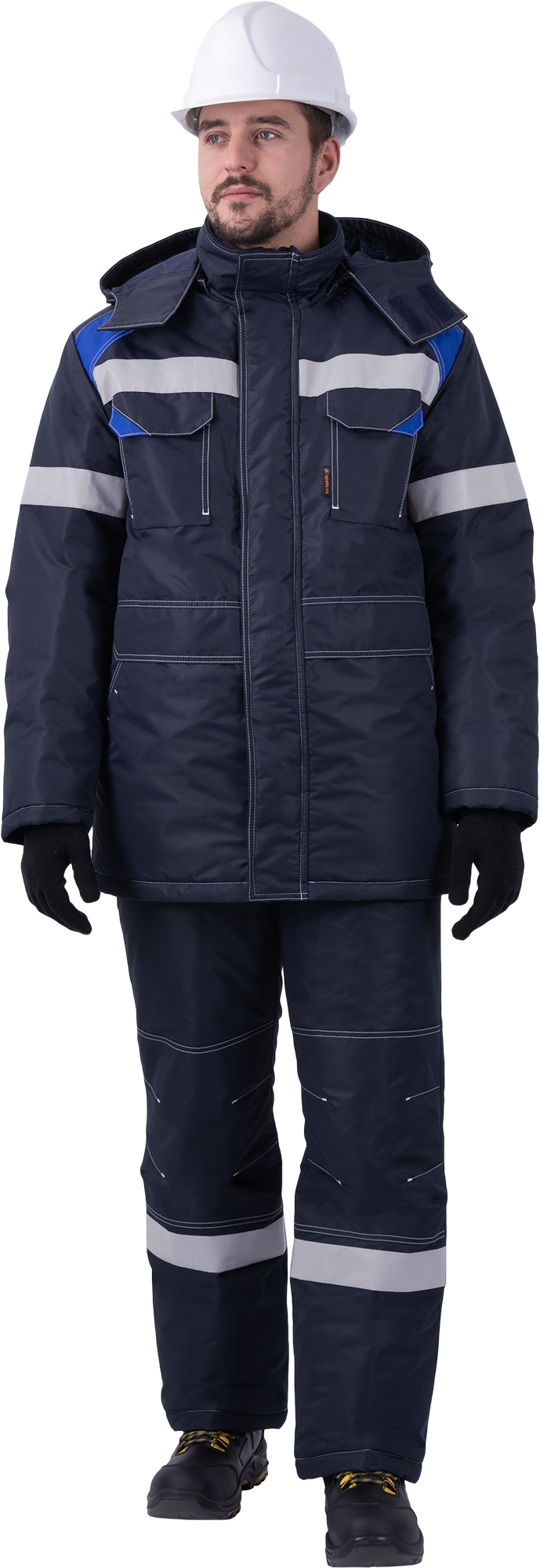 Мужской зимний рабочий костюм состоит из куртки и брюк.