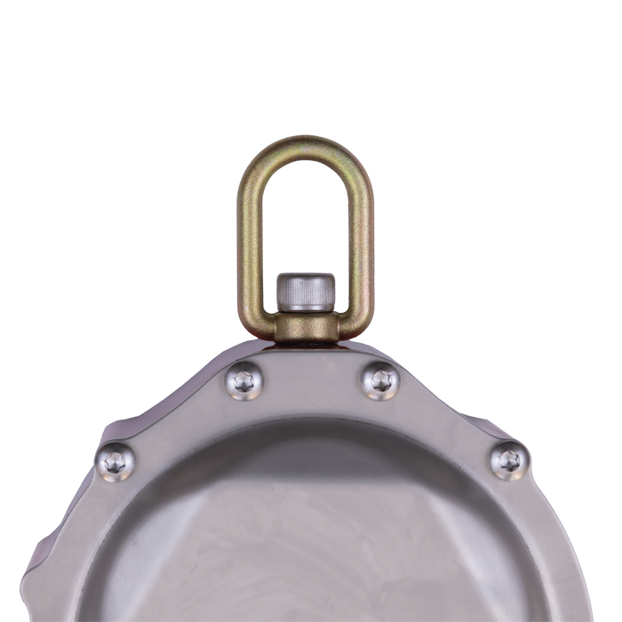 - В верхней части корпуса установлена вертлюга для исключения перекручивание троса и соединения карабином с анкерной точкой.