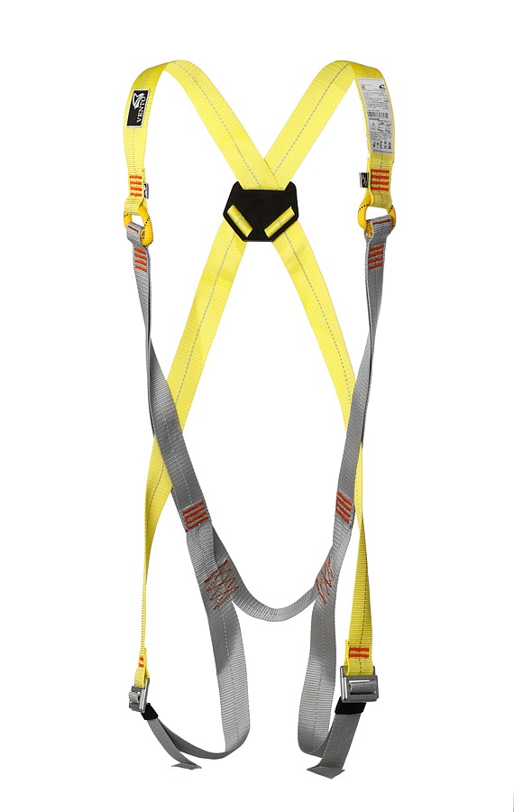 - две страховочные точки (на груди и на спине) обеспечивают правильное положение тела человека в случае срыва. Фронтальная страховочная точка, выполненная по схеме А/2, требует блокировки. Точка крепления сзади на Х-образных плечевых лямках удобна для присоединения к системе удержания при срыве;